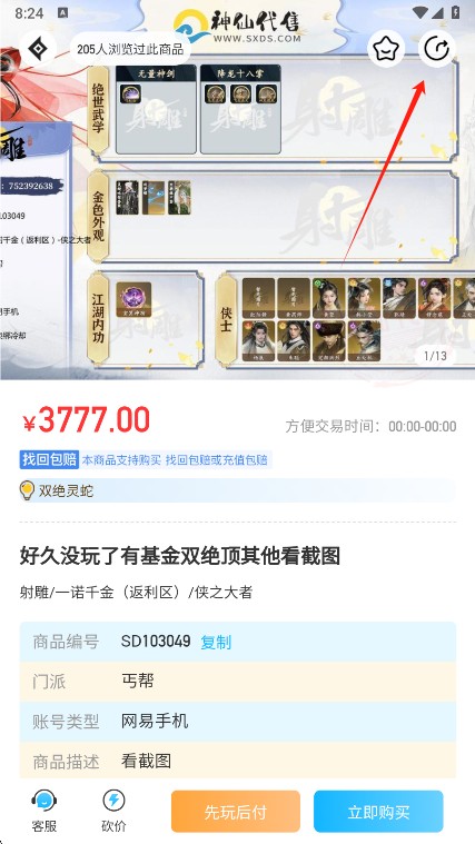选择交易平台:首先,玩家需要找到一个有交易仙途游戏或其他相关游戏的第三方交易平台。这里小编就推荐使用神仙代售游戏交易平台。这些平台通常允许玩家售卖游戏内的各种物品,包括元宝、账号、激活码等。