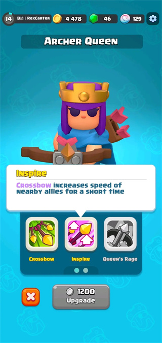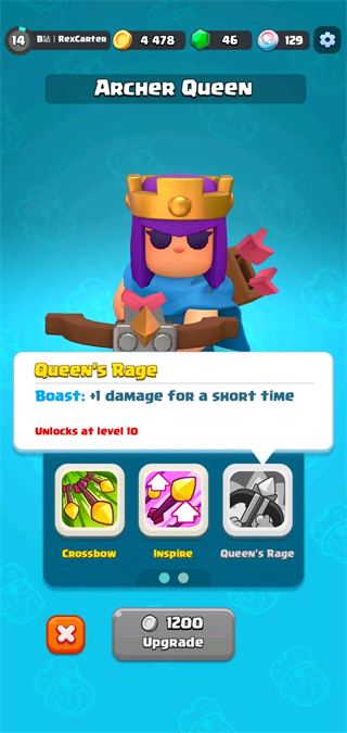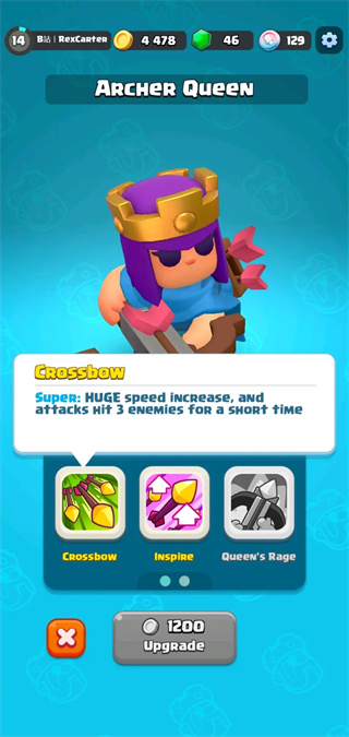 她的1级的技能名为为“crossbow”。在能量条满了之后,女皇将会自身开启狂暴,提升攻速并且在短时间内每发普攻都会命中三位敌人。