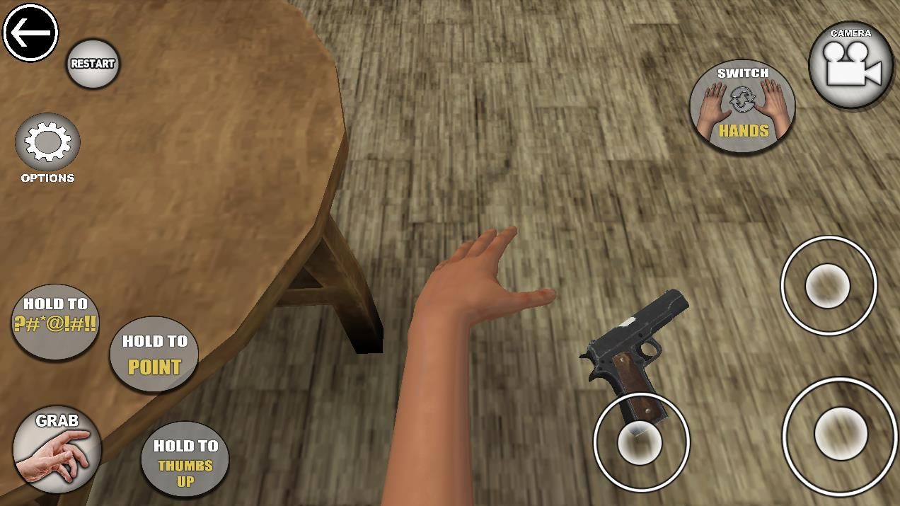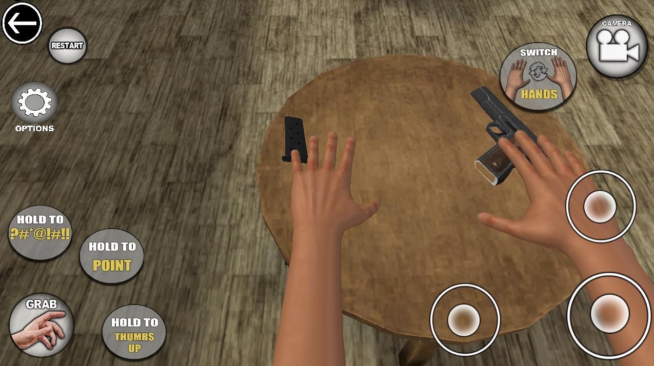 2、玩法规则是拿起桌子上各种物品,例如手枪、笔记本电脑、剪刀等等!
