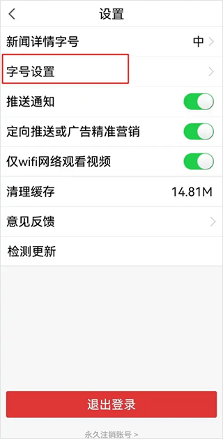 3、点击【字号设置】;
