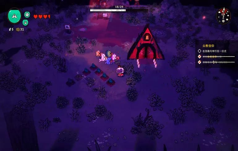 收集利用手边资源,建造新的建筑、举行暗黑仪式来取悦众神,通过布道传教加强信众对你的信仰。