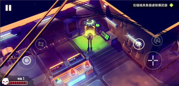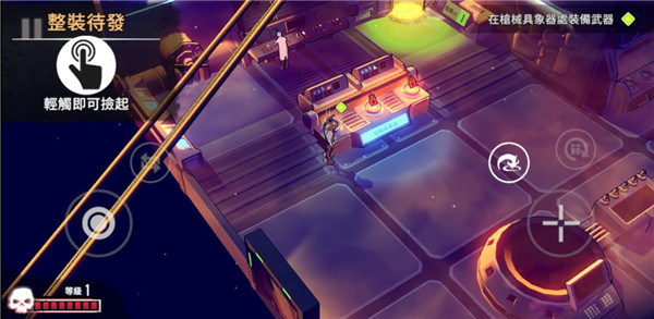 6、待确认任务地图,进入后即可看到游戏操作方式,左边轮盘控制角色的移动,右边分别为射击、翻滚和换弹