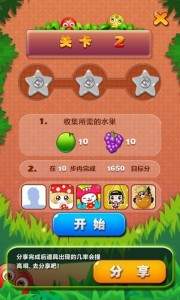 1.玩家操作一步消除的水果的数量越多的话,那么获得的分数也就会越高,也就越容易通关游戏。