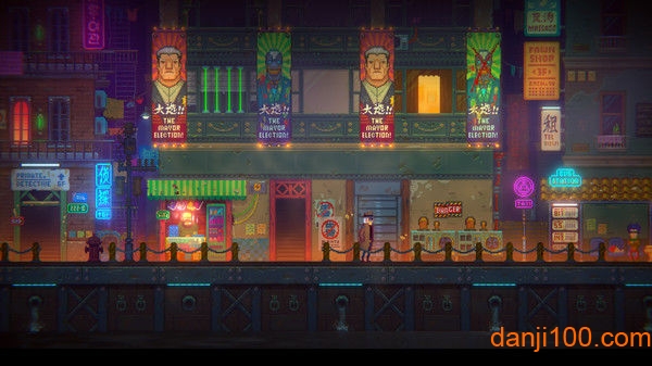 沉浸的赛博朋克世界:游戏通过精美的像素艺术和丰富的细节,打造出一个充满未来科技感的赛博朋克世界,让玩家仿佛置身其中。