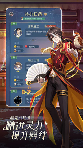 神仙记事录最新版2025是一款趣味十足的乙女向经营养成类手游,采用了精美的二次元立绘,主线剧情十分的悬疑,再搭配上精彩的游戏剧情,可以给玩家一种全新的游戏体验。在这里玩家扮演的女主将会认识四位男主,你会与他们邂逅什么样的剧情,让你感受恋爱般的悸动。游戏开局是从女性视角展开,盐系女主搭配四位神仙美男,通过解锁不同的主支线剧情任务,玩家将会遇到不同的神仙,展开不同的玩法,可以自由选择喜欢的男神进行互动,还有严谨的主线剧情和多样化的游戏副本可以自由探索。