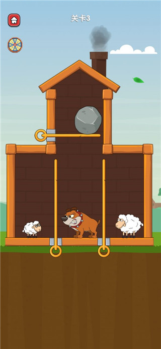 5、我们先把上面那根销移动,石头掉下来就会砸晕那个狗;
