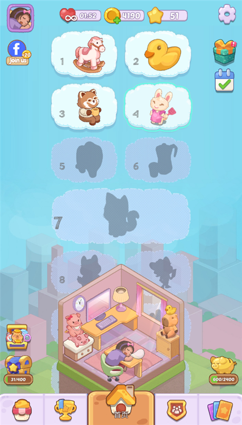 3、梦幻房间提供了丰富的室内装潢选项,玩家可以自由挑选各种风格的家具、装饰品和配件。