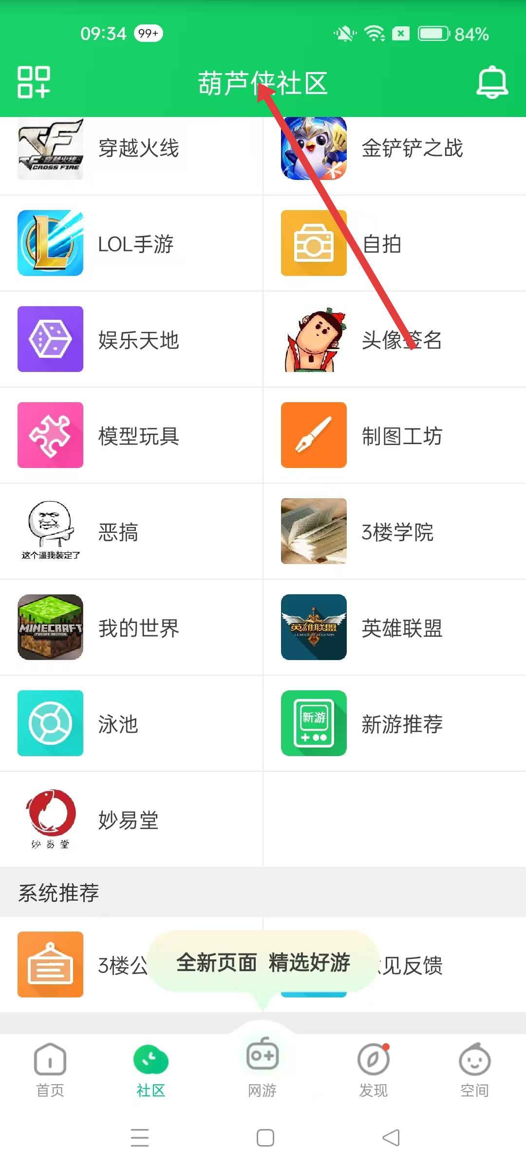 1、葫芦侠首页,点击社区,可进入葫芦侠社区页面,查看穿越火线、金铲铲之战等各类游戏板块。