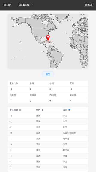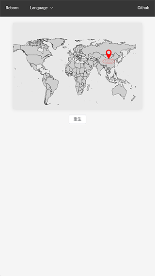 2、点击重生,你就会重生到全世界某个大陆的国家