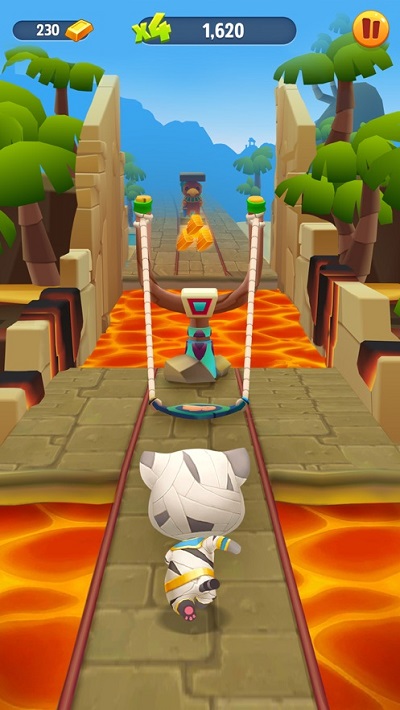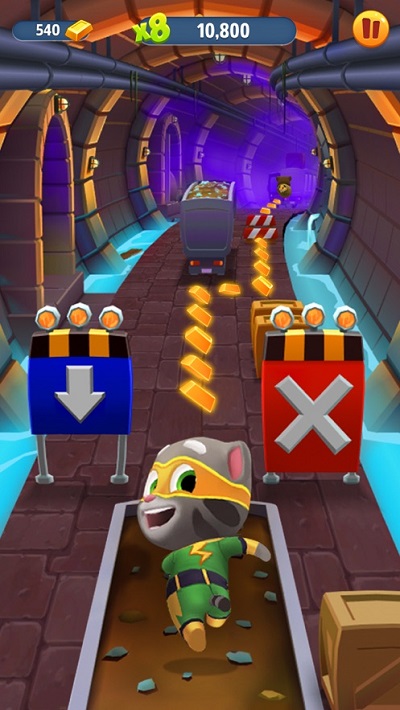 跳跃、滑动和躲闪是《汤姆猫跑酷》最基础也是最重要的操作。会说话的汤姆猫和他的朋友们如同身怀“凌波微步”的武林高手般,在不同的场景中闪转腾挪。无论挡在你前面的是路障、车辆或者水坑,只要及时进行规避操作,便可轻松化险为夷。在此为大家分享一个小窍门:在接触障碍物的一瞬间进行闪避操作,角色并不会“扑街”,只会暂时出现头冒金星的状态,而且绝对不影响后续操作,喜欢玩心跳的小伙伴不妨一试。