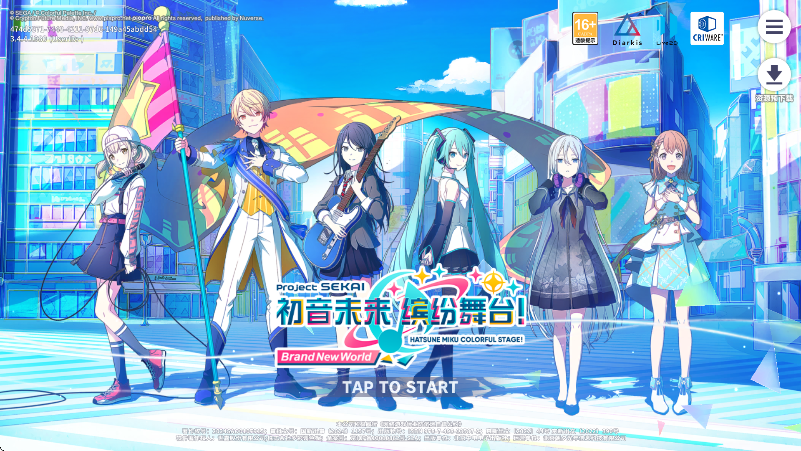 1、打开进入安装好的PJSK,使用手机号获取验证码注册登录后,点击屏幕开始游戏;
