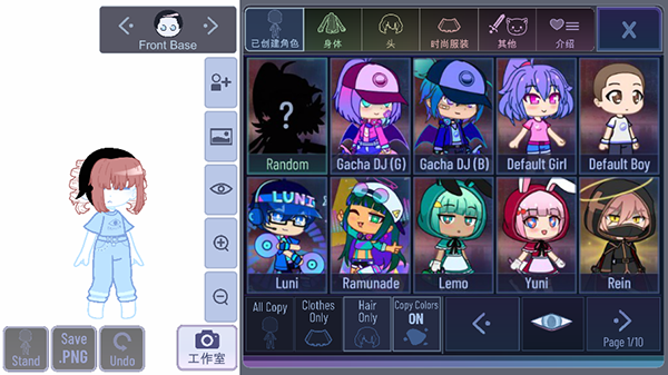 4、在【工作室】界面,我们可以自由地拖动和调出游戏中的所有角色和道具,