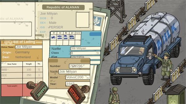 玩家将面临各种挑战,包括检查护照、签证、身份证等证件、检查车辆和行李、识别假证件,并时刻警惕走私。不同的任务复杂程度会逐渐增加,需要玩家更仔细地分析和判断。
