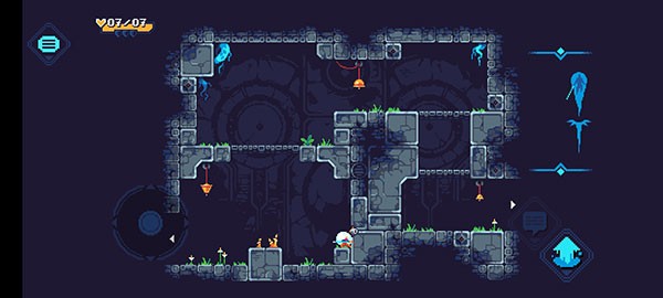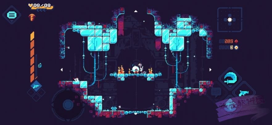 5、自由探索移动,小心隐藏的关卡障碍和陷阱,时刻注意左上角的生命值。