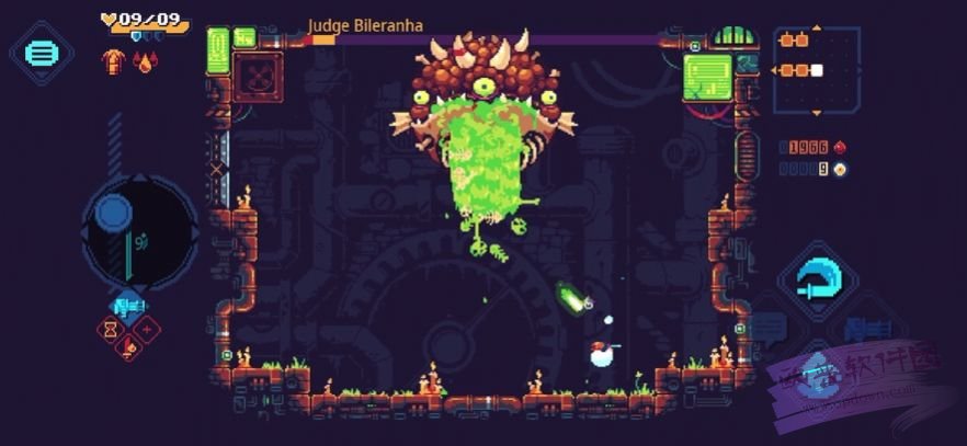 3、打boss的时候枪械的伤害也很给力,尤其是加特林这种大杀器,跳boss头上一通扫射,boss就少了小半条血,然后无敌斩,有无敌斩消敌人弹幕变子弹的天赋更好,捡起子弹,再跳boss头上一通射,boss基本就没了。
