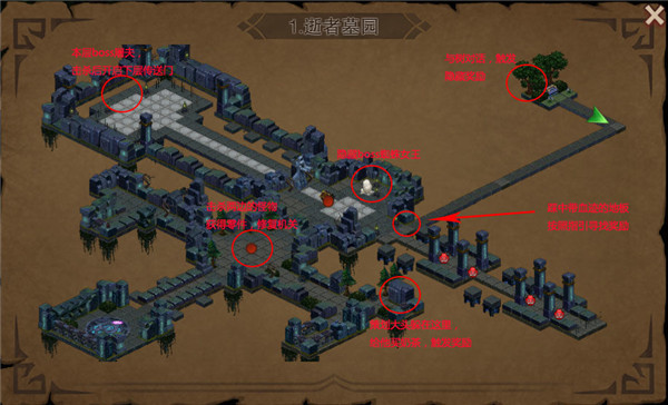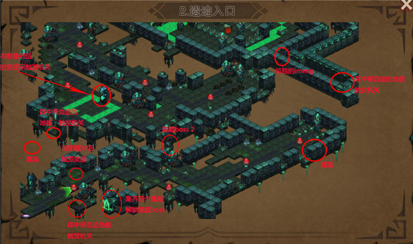 1、踩中带有血迹的地板触发奖励,与骷髅对话领取奖励,踩中带有血迹的地板触发机关。