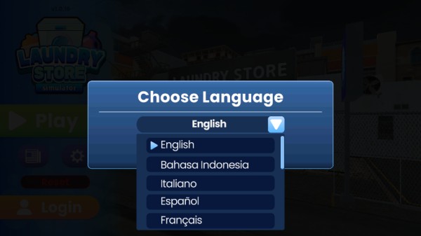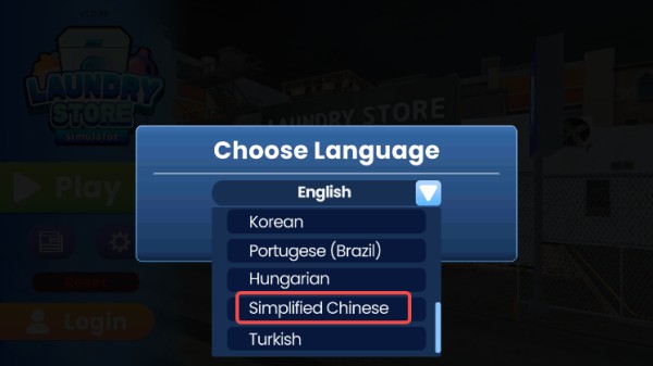 1、在本站下载安装洗衣店模拟器游戏,打开进入游戏,在choose language界面找到下拉三角;