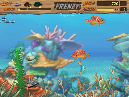 4、然后操控小鱼去吃掉其他的鱼即可,左上角是饱食度,并且达到一定的要求还会解锁成就