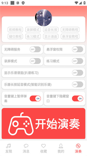 4、在演奏页面,大家需要先打开【无障碍服务】和【悬浮窗权限】