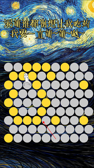 5、连线封闭起来就能围住神经猫啦,这个时候他已经逃不出地图了,最后只需要用最少的步数将神经猫围住就能获得胜利啦。