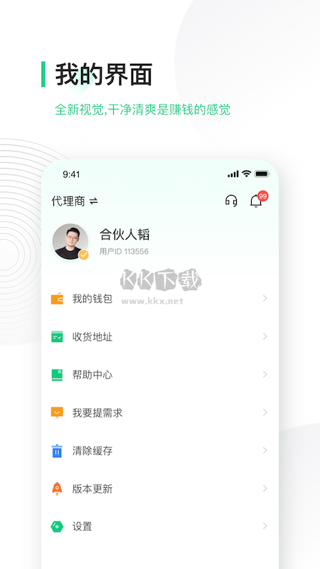 2、我的界面,全新视觉,干净清爽是赚钱的感觉。