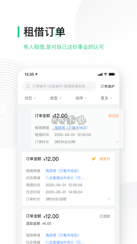 3、租借订单,有人租借是对自己这份事业的认可。