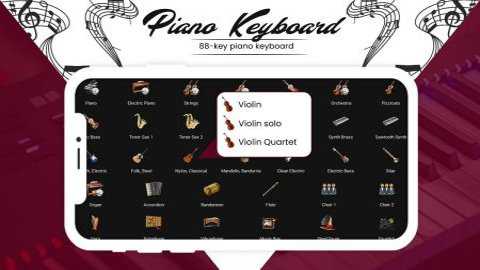 高品质多音色:原声钢琴、电钢琴、原声吉他、电吉他、小号、小提琴、架子鼓。