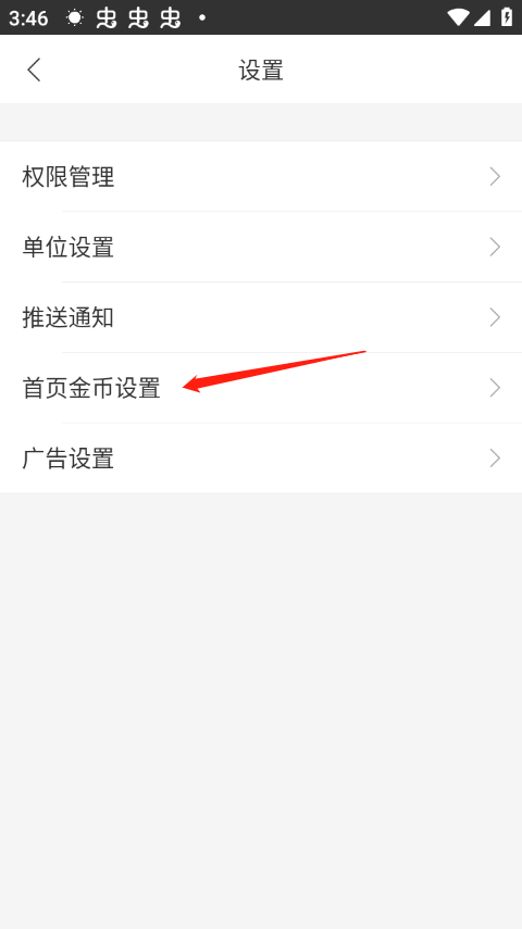 2、再然后点击首页金币设置。