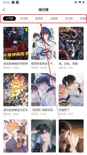 3、点击【排行榜】了解当天各个热榜的漫画资源,找到大家所喜欢看的漫画;