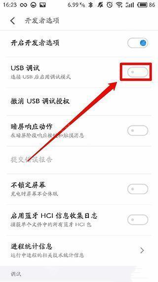 4、在系统设置中打开usb调试功能。