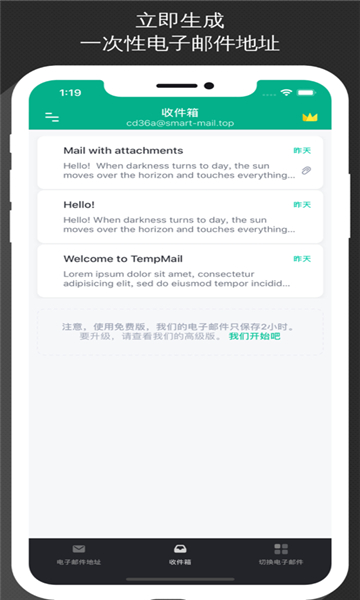 1、没有账号时创建一个一次性的邮箱地址发送邮件,无需注册即可使用。
