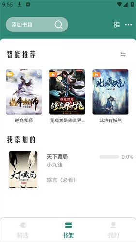 2、内置一个智能书架,不仅可以将喜欢的书籍添加进去,同时还能够方便的管理。