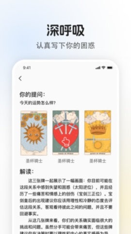QUIN塔罗牌可以为用户提供AI解答塔罗牌的体验,软件中通过抽取塔罗牌的方式来为用户进行解析占卜,让用户能够通过与平台中的AI进行交流,来找到解决的方法,软件中更有超多的趣味小组件等你来体验,为用户提供更加详细的塔罗牌解析。