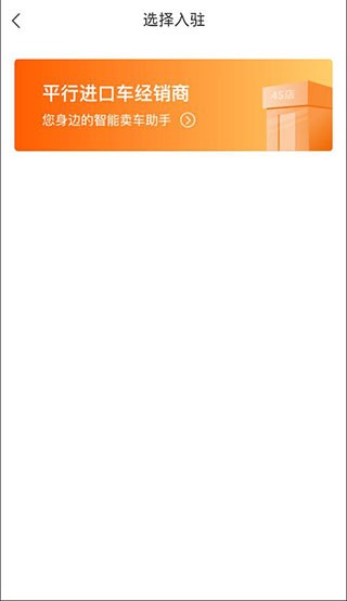 2、接着在选择入驻页面,点击平行进口车经销商,天写入驻信息。