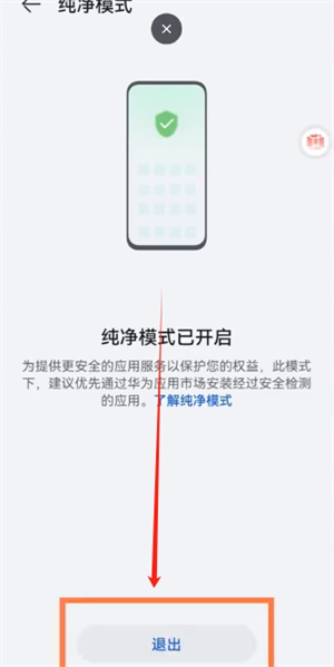 4、最后点击纯净模式下的【退出】按钮,即可将手机退出纯净模式。