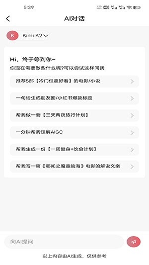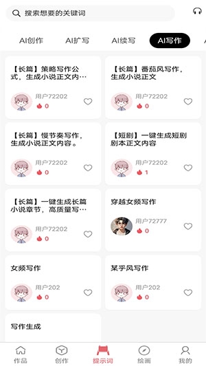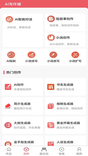 1、进入创作页面,为大家提供了AI智能对话、小说创作、短故事创作等功能服务。