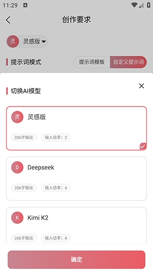 2、点击小说创作进入,可以先选择自己喜欢的AI模型。