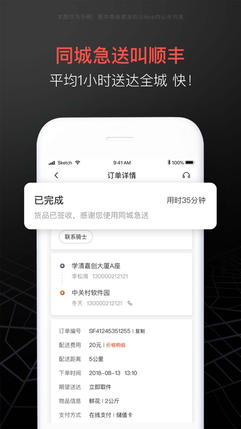 顺丰同城急送,高效即时配送的优选。它拥有专业骑手团队,能快速响应订单,全城闪送,平均配送时长极短,让您的物品以最快速度送达。无论文件、美食还是鲜花,都能安全无损运输。而且支持多种下单方式,操作便捷。凭借顺丰强大的品牌信誉和完善的服务体系,提供7×24小时服务,为您带来省心、放心、安心的同城配送体验。