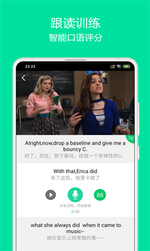 4、智能实时口语评分,逐句跟读逐词打分,助你攻克“开口”难关。