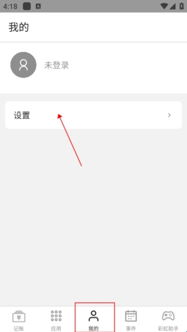 2、点击中间“我的”按钮,再次点击设置。