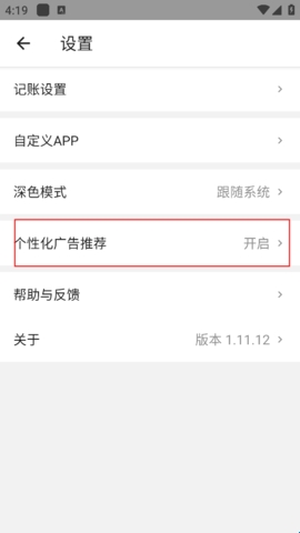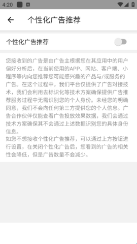 3、进入即可看到个性化广告推荐按钮,点击关闭即可。