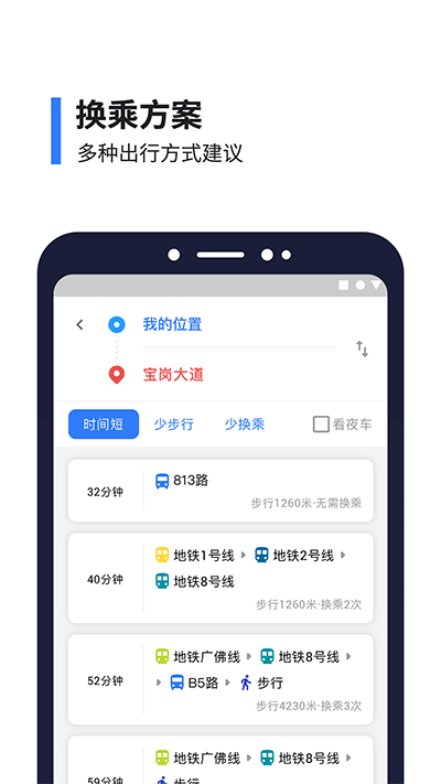 根据用户的出发点和目的地,智能推荐多条出行方案,帮助用户做出最优选择。