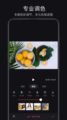 畅片app手机版允许以4K分辨率和60帧每秒的流畅度导出视频,确保输出视频的高清效果。用户能够轻松对视频进行裁剪,任意调整各段落的长度。软件采用智能算法,会自动挑选优质片段进行剪辑,帮用户快速拼接。应用还设有丰富的转场特效,帮助用户在剪辑过程中提升视频的视觉效果。