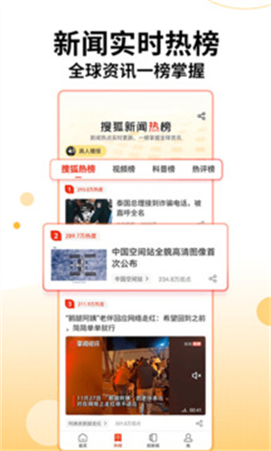 1、在这里的新闻紧跟时事热点,可以满足用户吃瓜八卦,也可以学习有趣的生活方式,关注国际形势,除此之外,还有智能推荐功能,在这么多的新闻下, 搜狐新闻通过独特的算法,把你想要关注的新闻,推送到你的首页上,让你更及时地关注自己想看的新闻。