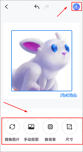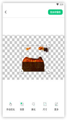 3、图片抠图成功后,用户可以根据自己的需求,对图片进行换背景,裁剪尺寸,加阴影等操作,改动完成后,点击【保存】即可保存在手机内。