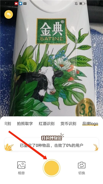 3、把需要识别的品牌logo对准并放入框内,接着选择下方的【圆圈】图标来拍照。