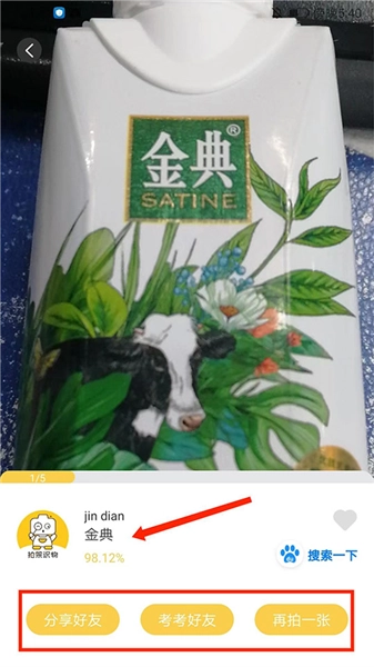 4、紧接着便会针对识别出的物品展开详细的【说明介绍】,用户还能够选择【分享好友】、【考考好友】以及【再拍一张】。