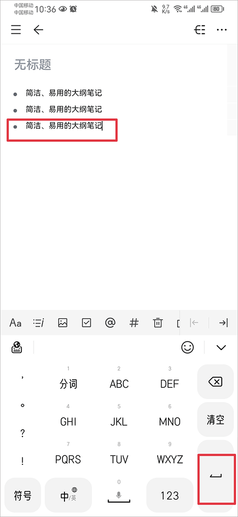 2、新增内容:将内容输入完成后,点击键盘的换行/回车即可。
