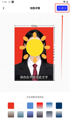 6、选择你想要的背景颜色,更换后点击右上角的【下一步】保存到手机。