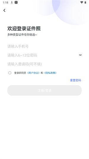 1、打开手机上下载的智能证件照换底色app,登录你的账号,可注册后登录;